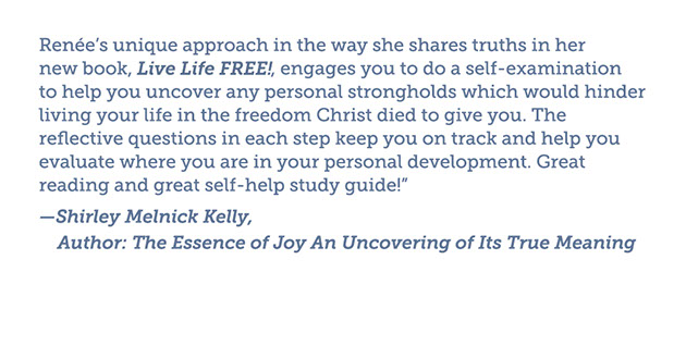 Throughout the book Renée shares direct revelations and inspirations she has received from God through the Holy Spirit during her times of study and teaching that will inspire and ignite your faith to believe change is not only possible, but attainable. You CAN Live Life FREE!