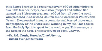 Renée Branson is the founder and director of Mountain Top Ministries, a worldwide outreach in Houston, Texas since 1989. Employed by Lakewood Church for over 40 years Renée has served in various capacities as an ordained minister, pastor’s secretary, missions coordinator, pastoral care minister, disaster response coordinator, donor relations coordinator, and executive assistant in Joel Osteen Ministries community outreach, office of special projects at Lakewood Church. She currently serves as a pastoral assistant and writer.